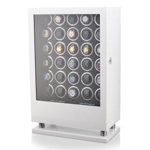 The LCD touchscreen display enables easy setup. Three rotation directions are available: clockwise, counterclockwise and bi-directional (mixed). In the mixed mode, the rotor rotates clockwise and counterclockwise alternately. An electronic controller counts every turn of the watch for supreme winding precision. The rotors are very quiet. You can hardly hear them spinning.