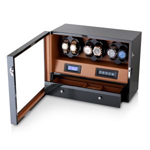 6 storage slots are designed for watches that do not require winding (quartz watches for example). 6 watch winder with 6 storage slots allows you to keep your entire collection in a compact case.
