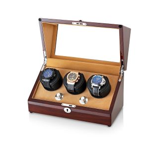A watch winder is a device with an electrical motor which will automatically wind your watch when you are not wearing it. Automatic watches have a limited power reserve, so if you stop wearing them and winding them up, they will run down in two or three days. The reserve depends on the watch brand and on movement (caliber) used.