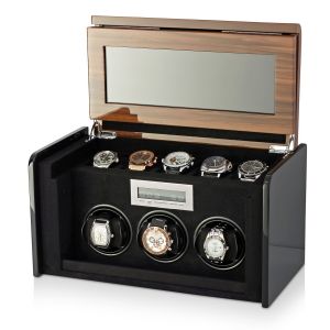 Watch winder rotors can be programmed independently. You can set an individual program for each rotor depending on the watch model you place into it.