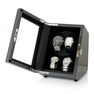 A watch winder is a device with an electrical motor which will automatically wind your watch when you are not wearing it. Automatic watches have a limited power reserve, so if you stop wearing them and winding them up, they will run down in two or three days. The reserve depends on the watch brand and on movement (caliber) used.