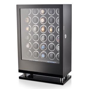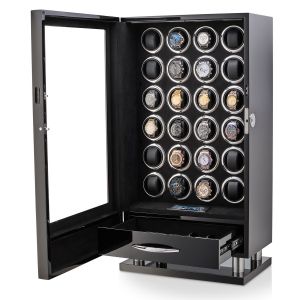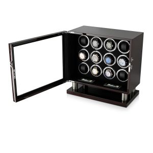 The watch winder has a Motor-Stop option. If Motor-Stop option is activated, all rotors will stop when you open the door. This option prevents the breakdown of the winder mechanism when you install or remove the watch.