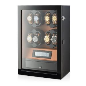 The watch winder has a Motor-Stop option. If Motor-Stop option is activated, all rotors will stop when you open the door. This option prevents the breakdown of the winder mechanism when you install or remove the watch.