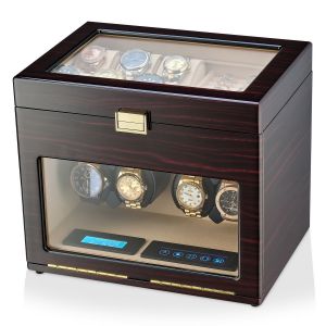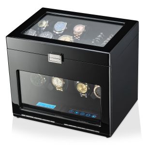 Unlike devices for winding 3 or 4 wristwatches, automatic watch winders for 8+ watches provide much more options. Most of them have an LCD for displaying the operating mode of each rotor. Almost all devices have a built-in LED light that allows you to admire your watch collection during winding.