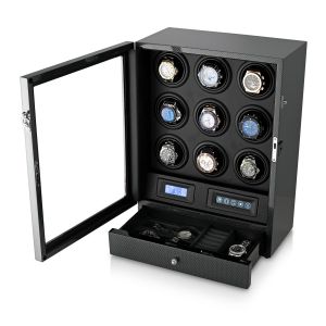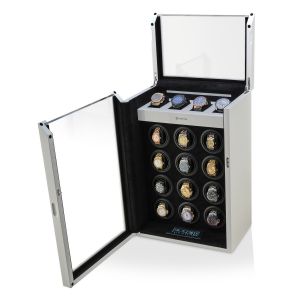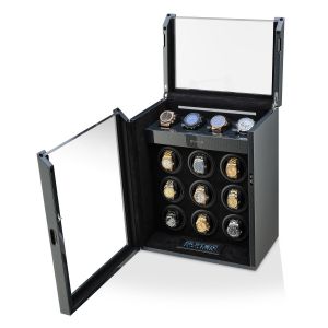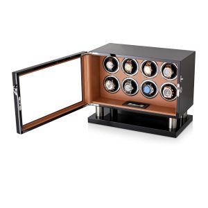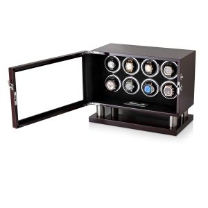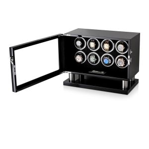 The watch winder has a Motor-Stop option. If Motor-Stop option is activated, all rotors will stop when you open the door. This option prevents the breakdown of the winder mechanism when you install or remove the watch.